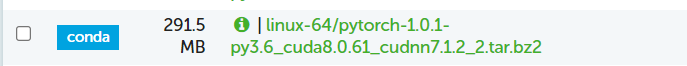 我下载了torchvision-0.2.1-py36_1.tar.bz2,开头下载了torchvision-0.2.2-py_3.tar.bz2但是安装不成功。所以就换了。。。。