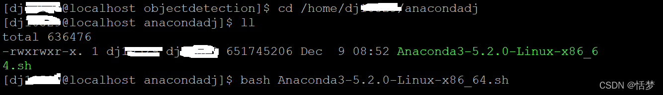 3)在该目录下执行bash Anaconda3-5.2.0-Linux-x86_64.sh