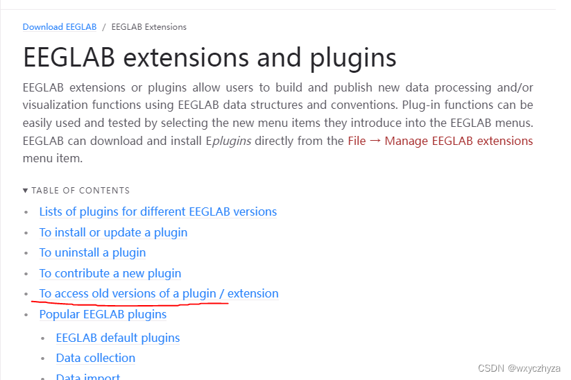 如果需要下载旧版的EEGLab对应的插件,可以选择【To access...】选项跳转到对应的页面下载。