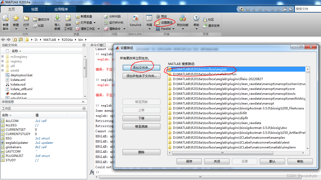 2. 将EEGLab文件夹添加到matlab路径。