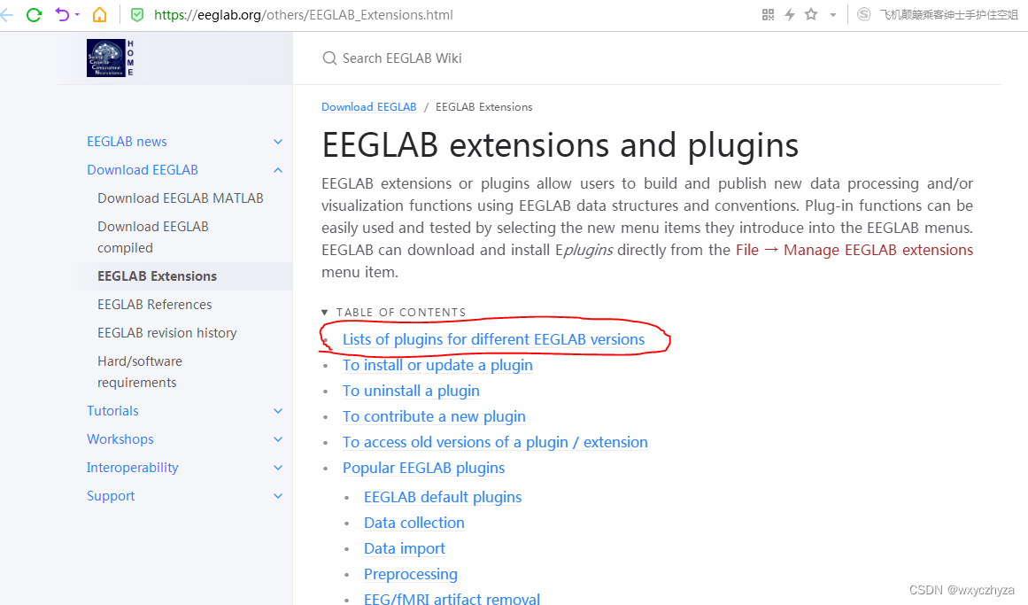 EEGLab的extention网址如下,选择其中的【list of ...】选项。