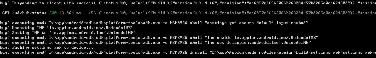 node D:\\app\Appium\\node_modules\\appium\\bin\\appium.js -p 4723 -bp 4733 -U DU2TAN15AJ049163 --nodeconfig D:\app\appium_study\testRunner\test.json