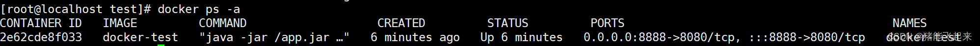 ?c.容器运行: docker run -d -p 8888:8080 --name docker-test docker-test